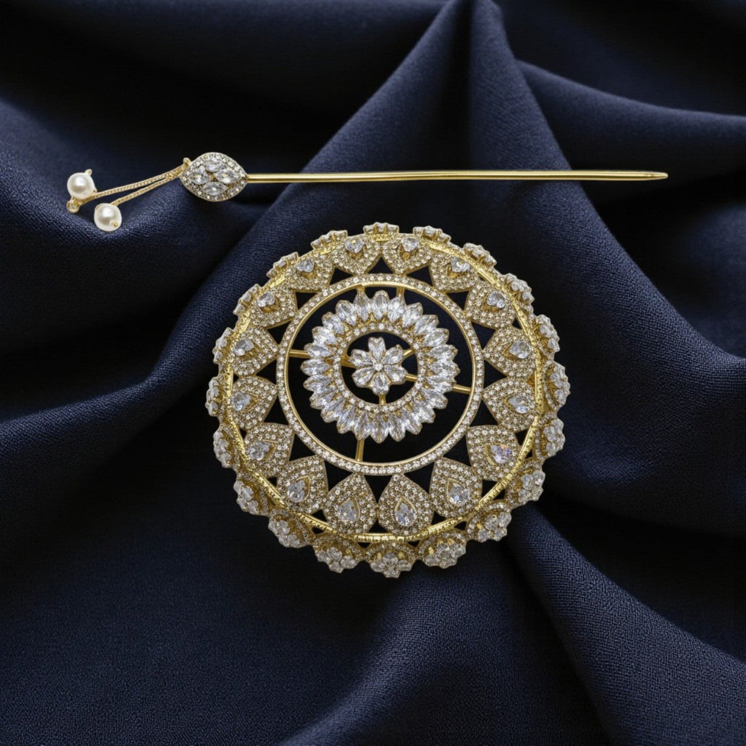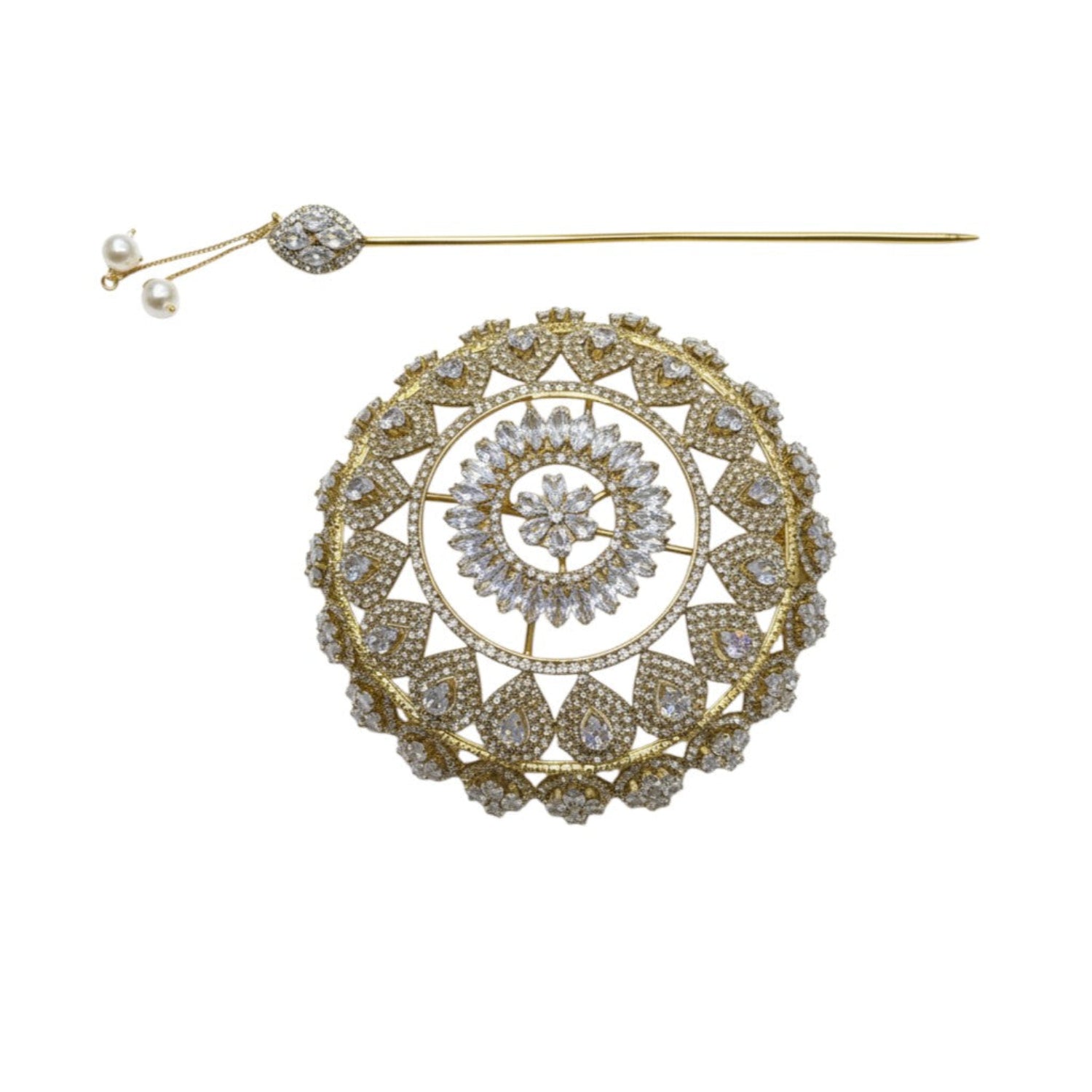 Pair this dazzling Juda Pin with your silk saree, lehenga, or cocktail ethnic wear to create an effortlessly royal statement.