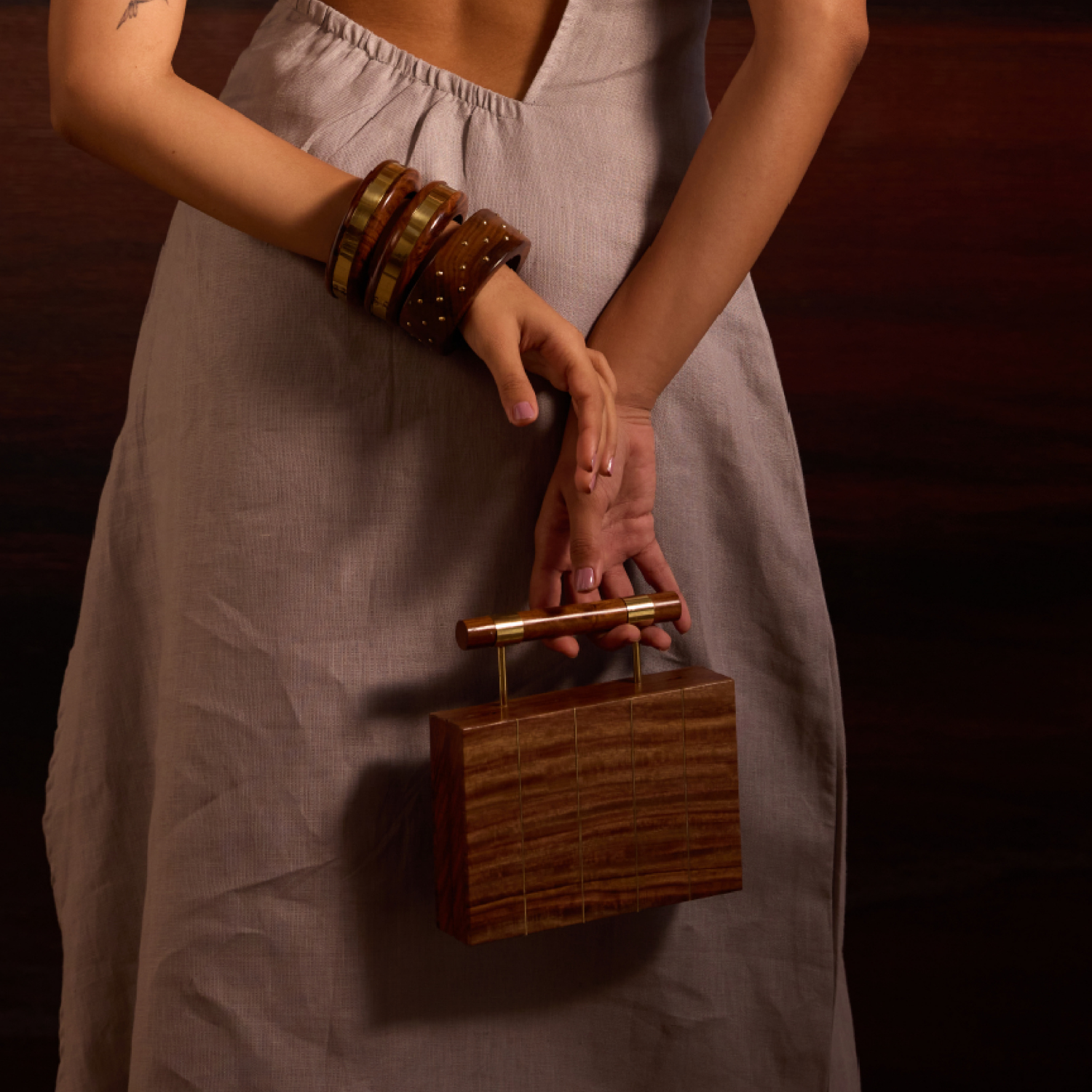 Discover the beauty of sustainable elegance with our handcrafted wooden bags, made by skilled artisans in India. Each piece combines timeless craftsmanship with nature’s finest materials for a unique and eco-friendly accessory.